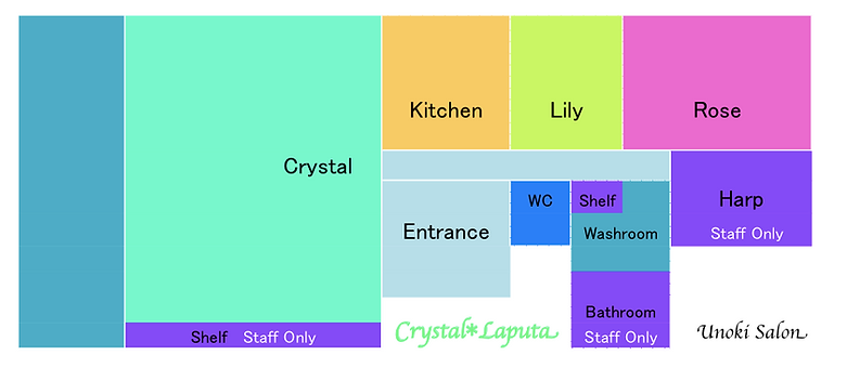 フロア全体 (C*Hセンター)・Crystal(大きな部屋)・Rose(小さな部屋)の3つより使用範囲をお選びください。(下図参照)